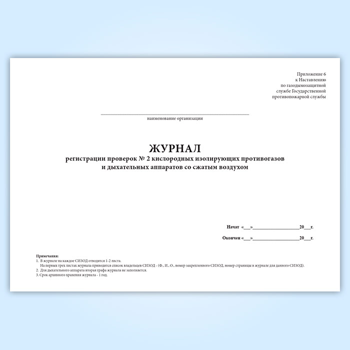 Журнал регистрации проверок № 2 кислородных изолирующих противогазов и дыхательных аппаратов на сжатом воздухе в Фрязино купить