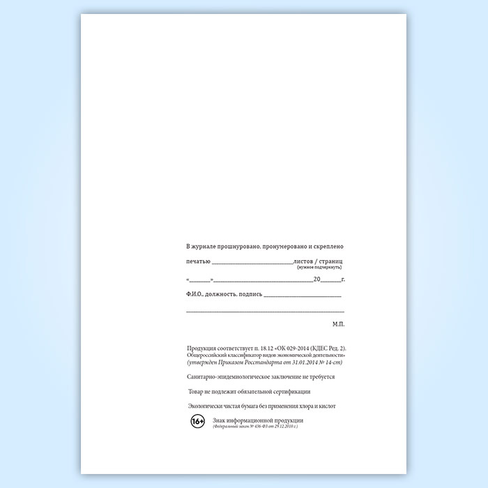 Вы получаете печатную продукцию прошнурованной и c местом для вашей печати в соответствии с действующими нормативными документами: