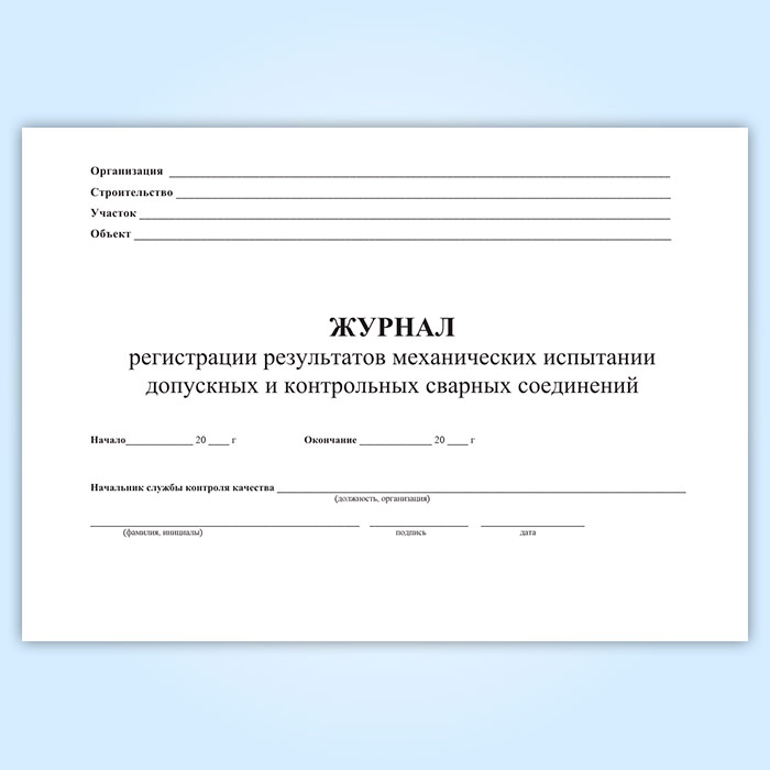Журнал регистрации результатов механических испытаний допускных и контрольных сварных соединений в Фрязино купить