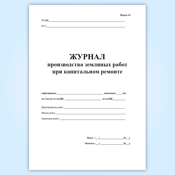 Журнал производства земляных работ при капитальном ремонте (форма 14) в Фрязино купить