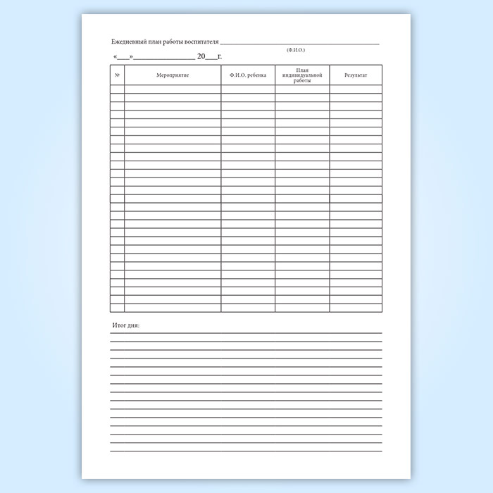 Ежедневный план работы воспитателя в Фрязино купить