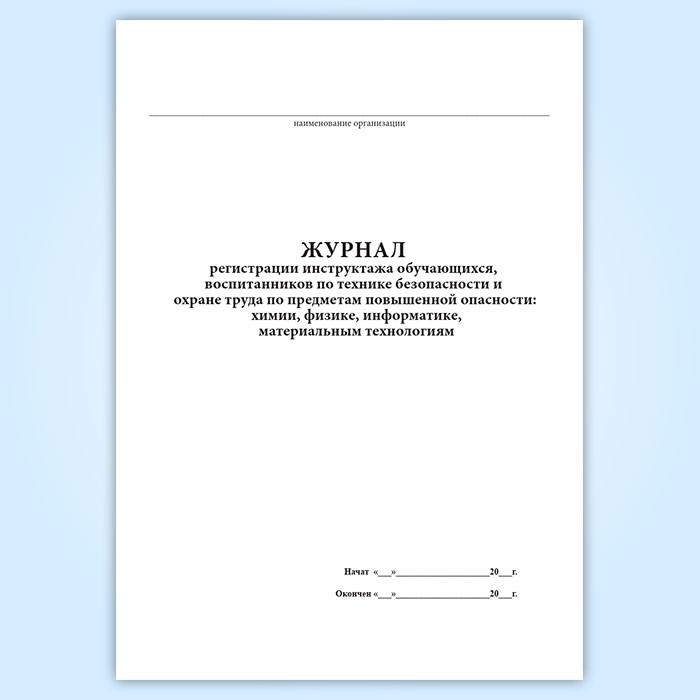 Журнал регистрации инструктажа обучающихся, воспитанников по технике безопасности и охране труда по предметам повышенной опасности: химии, физике, информатике, материальным технологиям в Фрязино купить