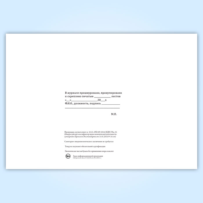 Вы получаете печатную продукцию прошнурованной и c местом для вашей печати в соответствии с действующими нормативными документами: