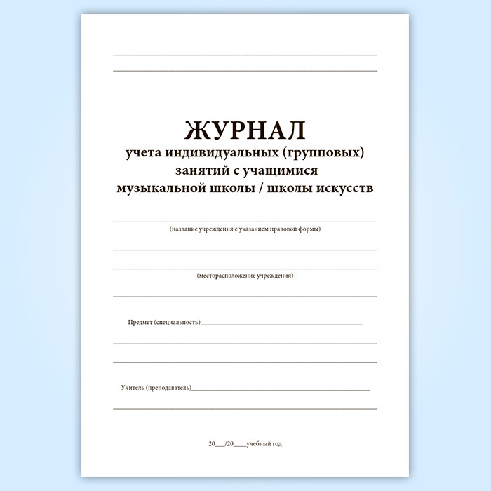 Журнал учета индивидуальных (групповых) занятий с учащимися музыкальной школы, школы искусств в Фрязино купить
