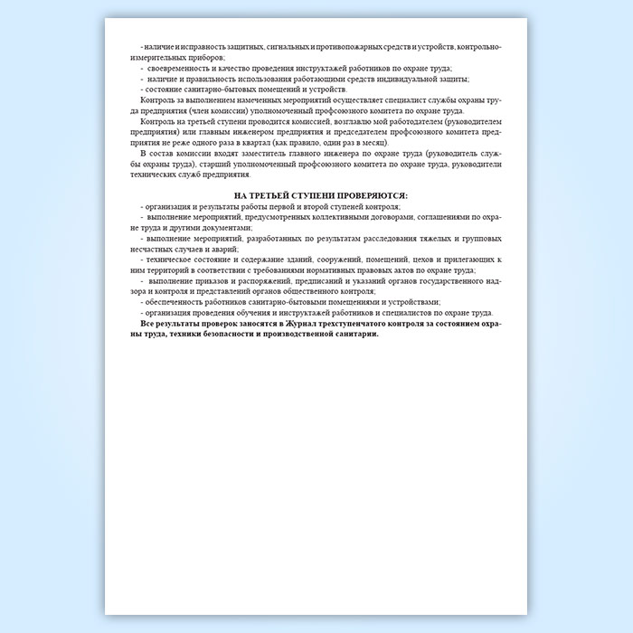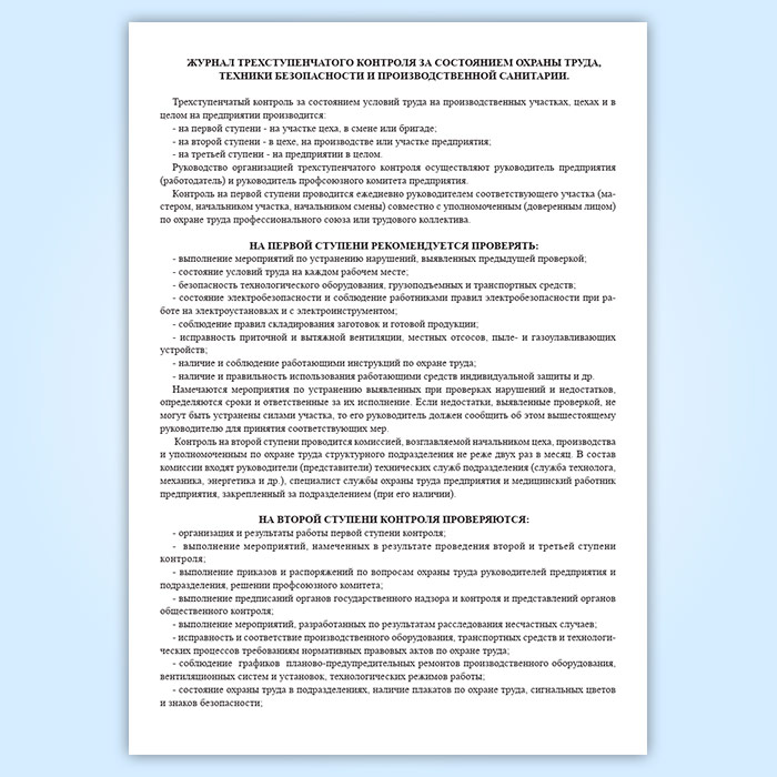 Журнал трехступенчатого контроля за состоянием охраны труда, техники безопасности и производственной санитарии 1 и 2 ступени в Фрязино купить