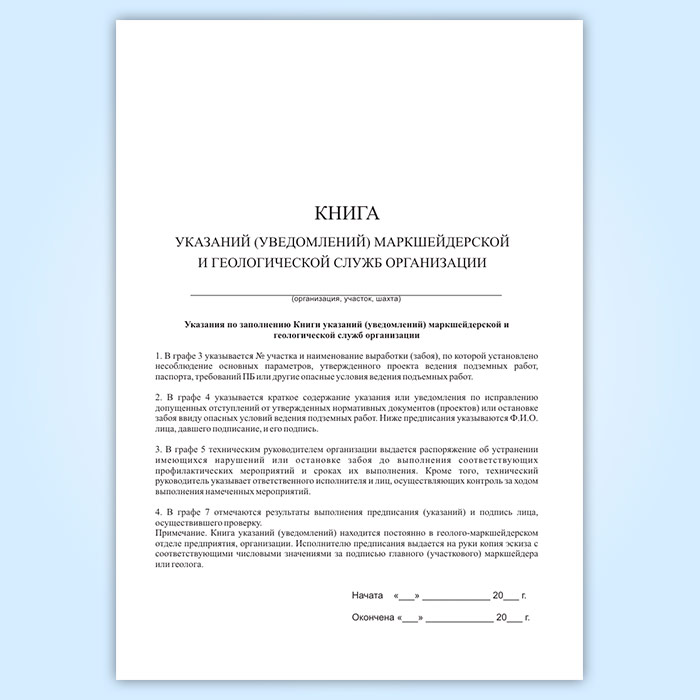 Книга указаний (уведомлений) маркшейдерской и геологической служб организации в Фрязино купить