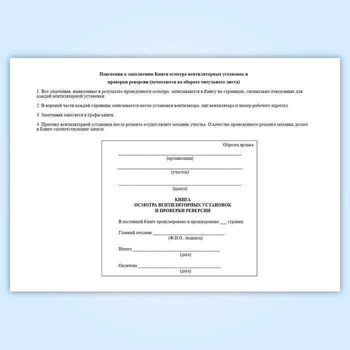 Книга осмотра вентиляторных установок и проверки реверсии в Фрязино купить