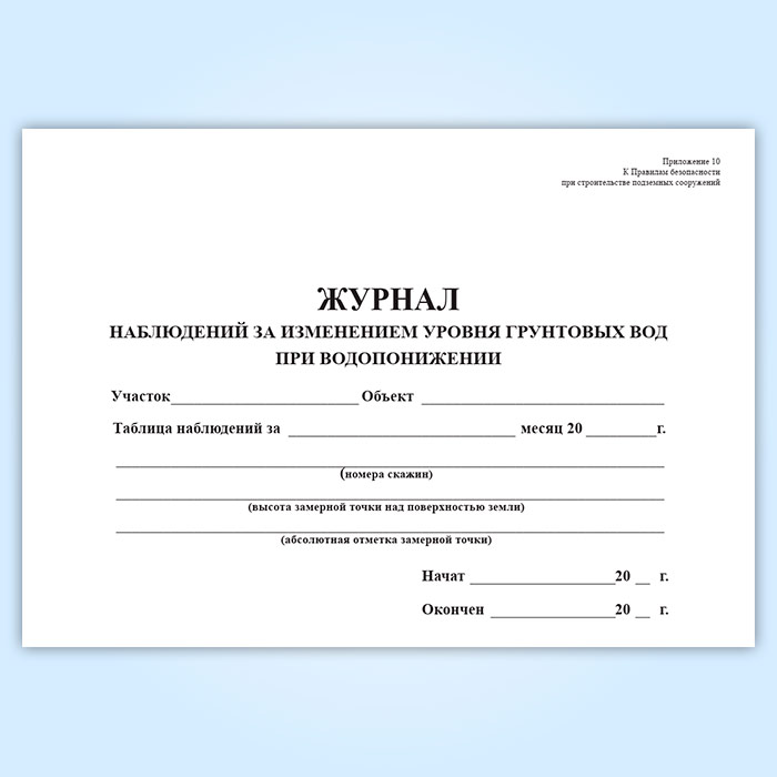 Журнал наблюдений за изменением уровня грунтовых вод при водопонижении в Фрязино купить