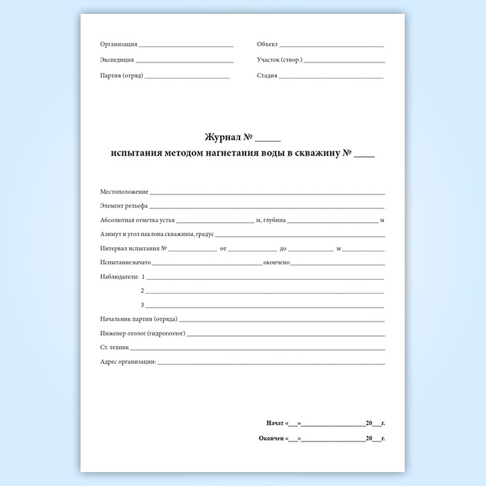 Журнал испытания методом нагнетания воды в скважину в Фрязино купить