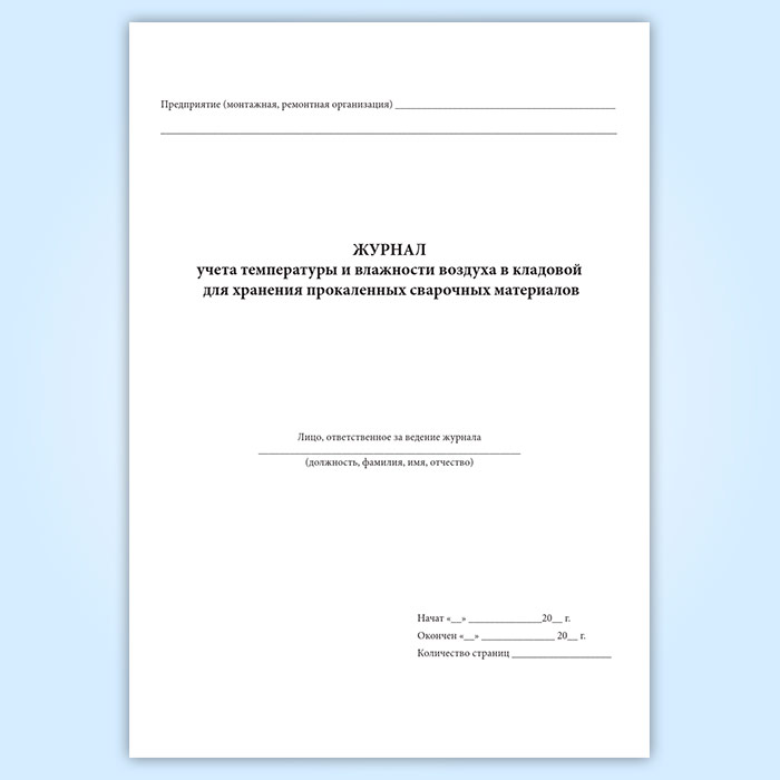 Журнал учета температуры и влажности воздуха в кладовой для хранения прокаленных сварочных материалов в Фрязино купить