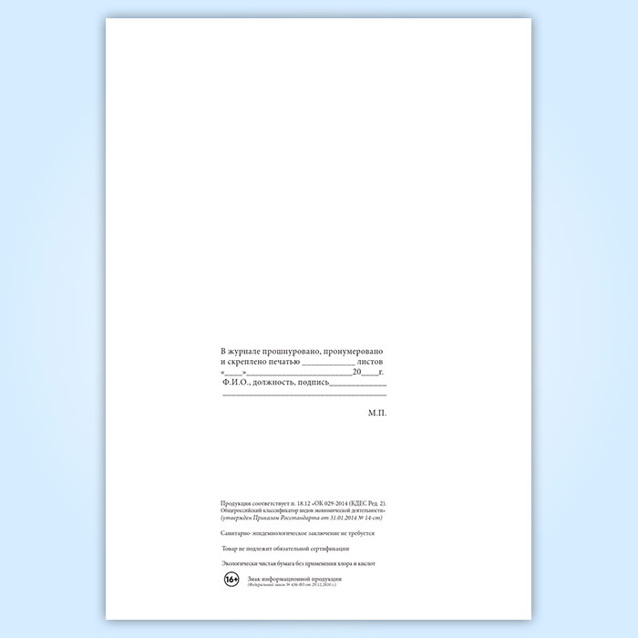 Вы получаете печатную продукцию прошнурованной и c местом для вашей печати в соответствии с действующими нормативными документами: