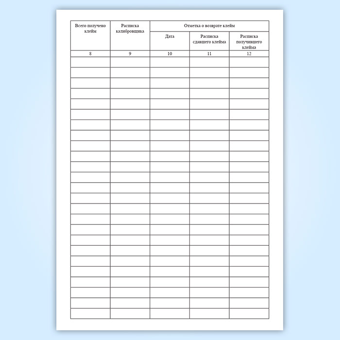 Журнал выдачи и получения калибровочных клейм в Фрязино купить