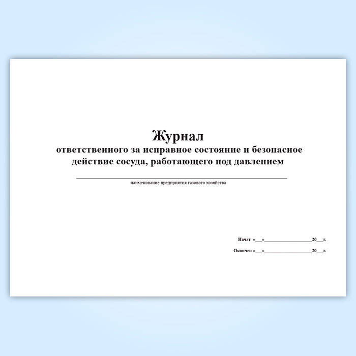 Журнал ответственного за исправное состояние и безопасное действие сосуда, работающего под давлением в Фрязино купить