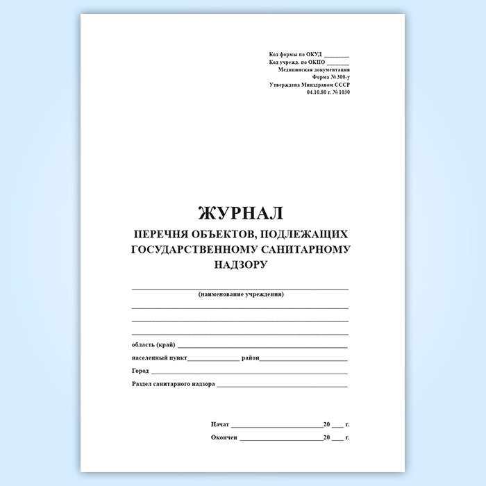 Журнал перечня объектов, подлежащих государственному санитарному надзору (форма 300/у) в Фрязино купить
