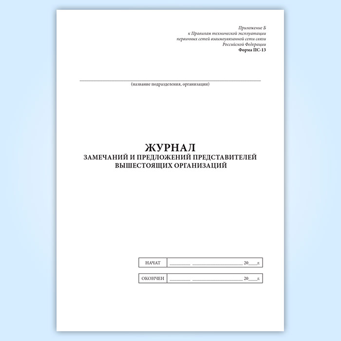 Журнал замечаний и предложений представителей вышестоящих организаций (форма ПС-13) в Фрязино купить