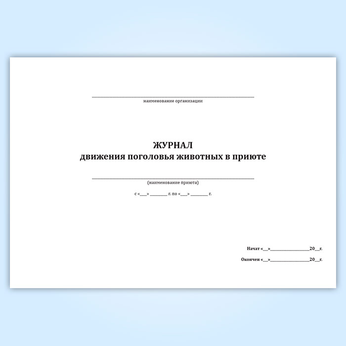 Журнал движения поголовья животных в приюте в Фрязино купить