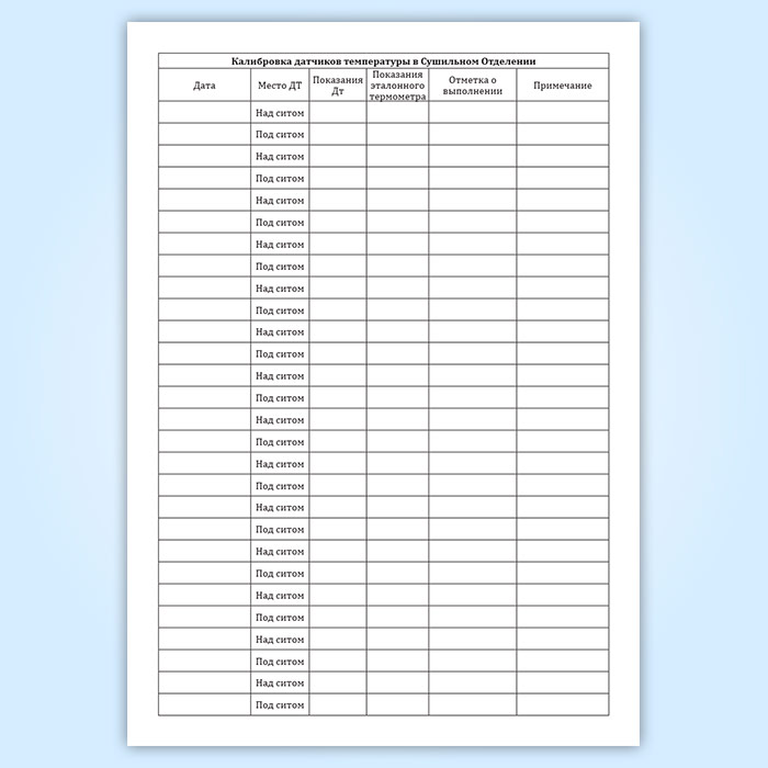 Журнал калибровки датчиков температуры в сушильном отделении в Фрязино купить