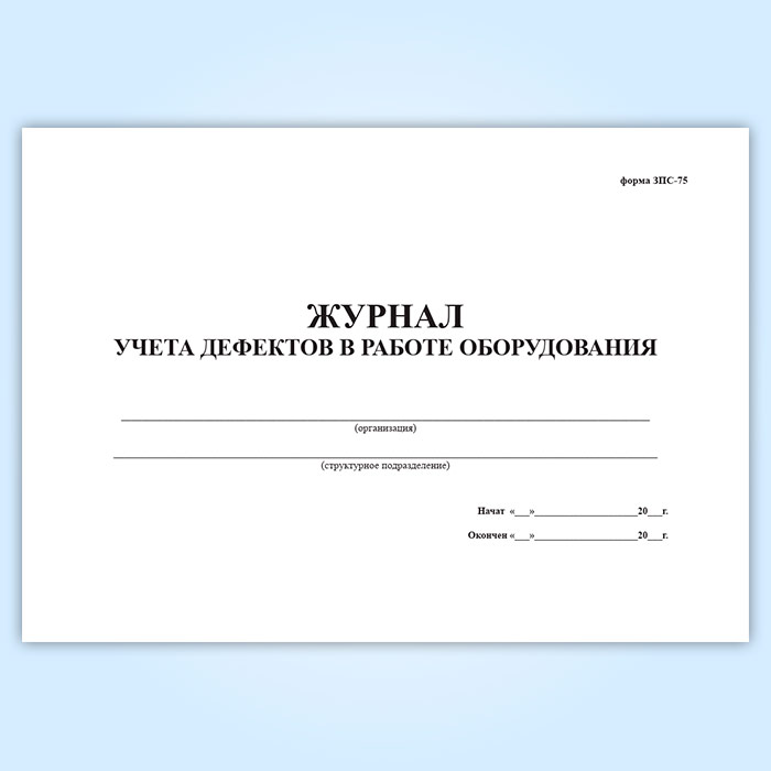Журнал учета дефектов в работе оборудования (форма ЗПС-75) в Фрязино купить