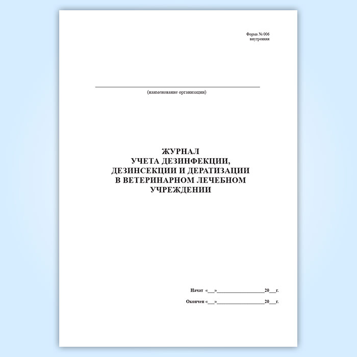 Журнал учета дезинфекции ветеринарного лечебного подразделения (форма № 006 вн.) в Фрязино купить