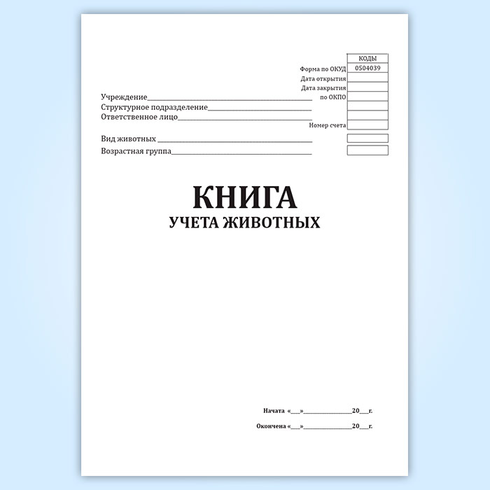 Книга учета животных (форма 0504039) в Фрязино купить