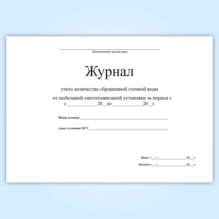 Журнал учета количества сброшенной сточной воды от мобильной снегоплавильной установки в Фрязино купить