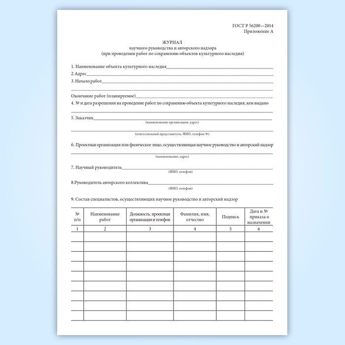 Журнал научного руководства и авторского надзора при проведении работ по сохранению объектов культурного наследия в Фрязино купить