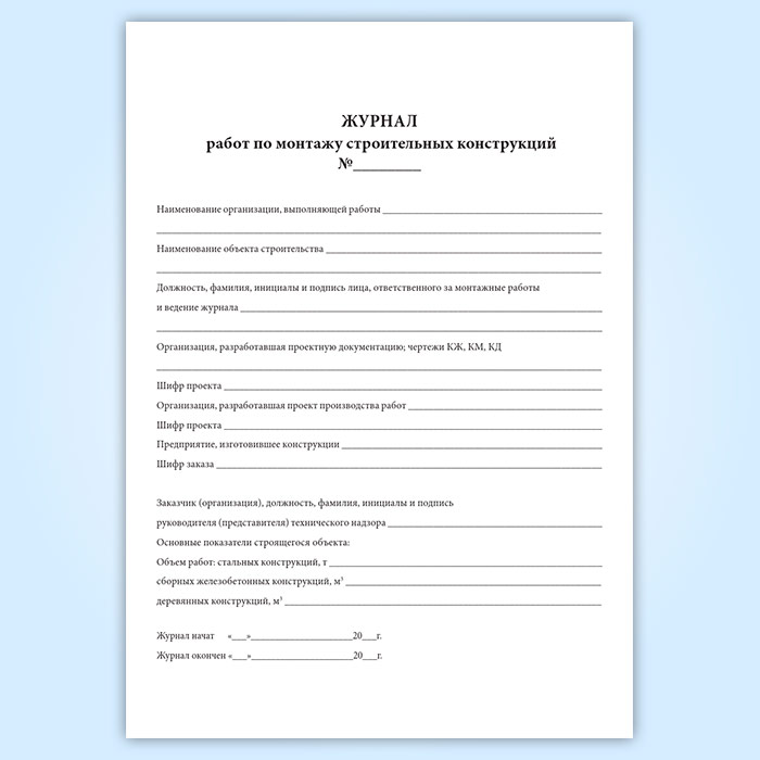 Журнал работ по монтажу строительных конструкций в Фрязино купить