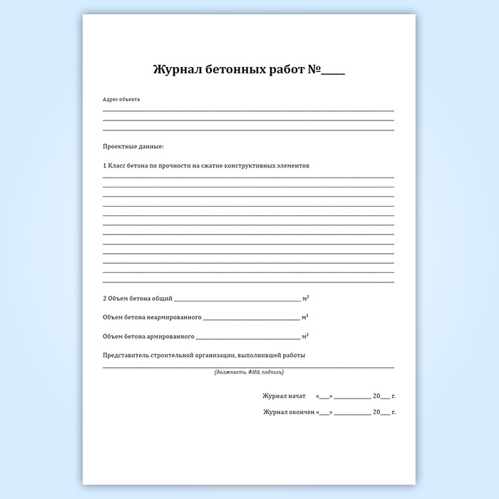 Журнал бетонных работ (форма 12.1, СП 392.1325800.2018) в Фрязино купить