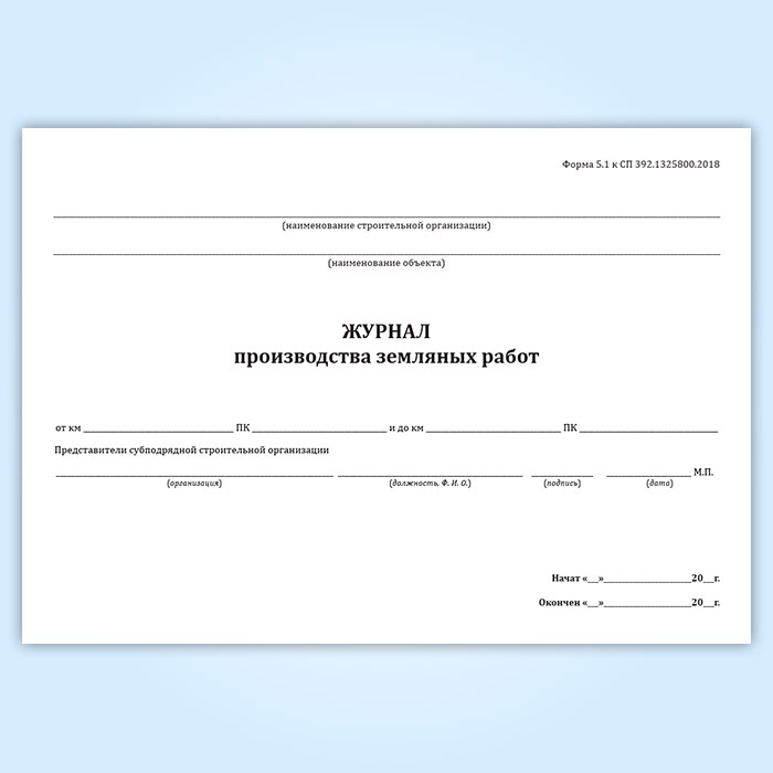 Журнал производства земляных работ (форма 5.1) в Фрязино купить