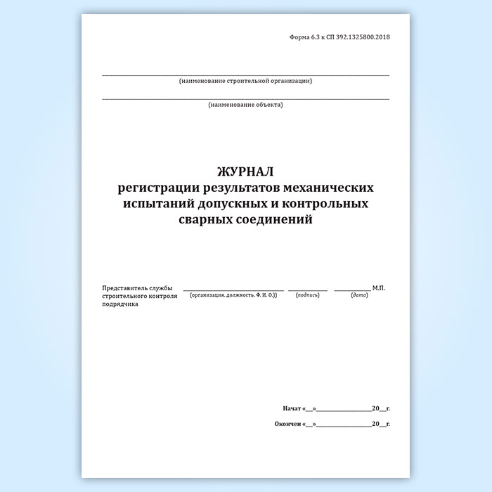 Журнал регистрации результатов механических испытаний допускных и контрольных сварных соединений (форма 6.3) в Фрязино купить