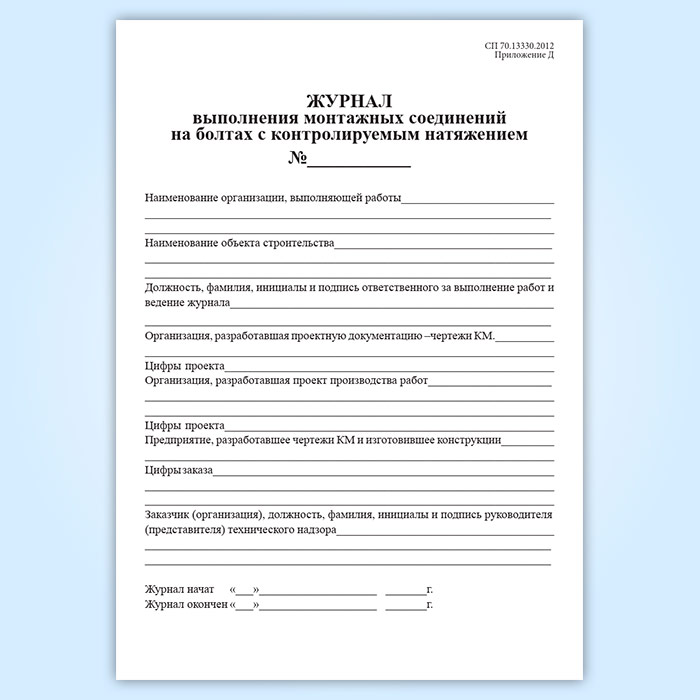 Журнал выполнения монтажных соединений на болтах с контролируемым натяжением в Фрязино купить