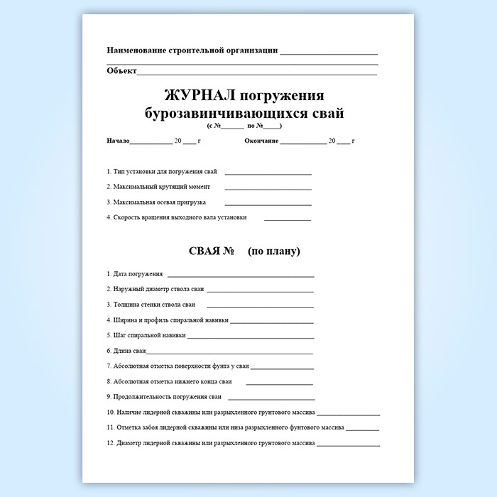 Журнал погружения бурозавинчивающихся свай в Фрязино купить