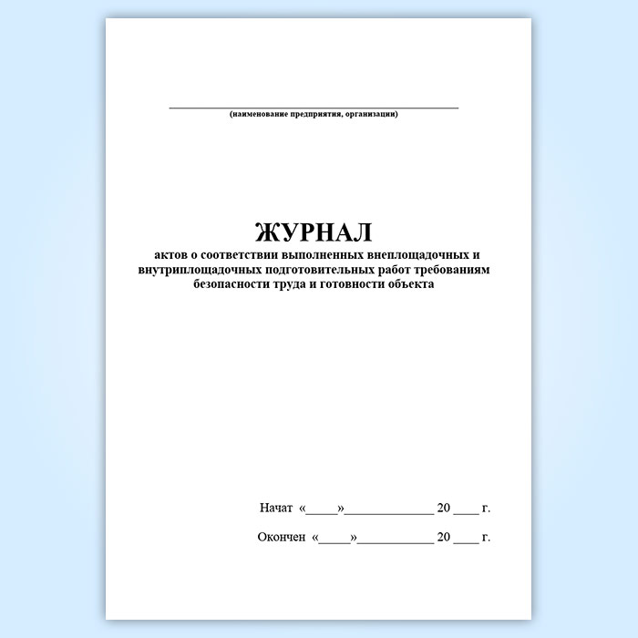 Журнал актов о соответствии выполненных внеплощадочных и внутриплощадочных подготовительных работ требованиям безопасности труда и готовности объекта в Фрязино купить