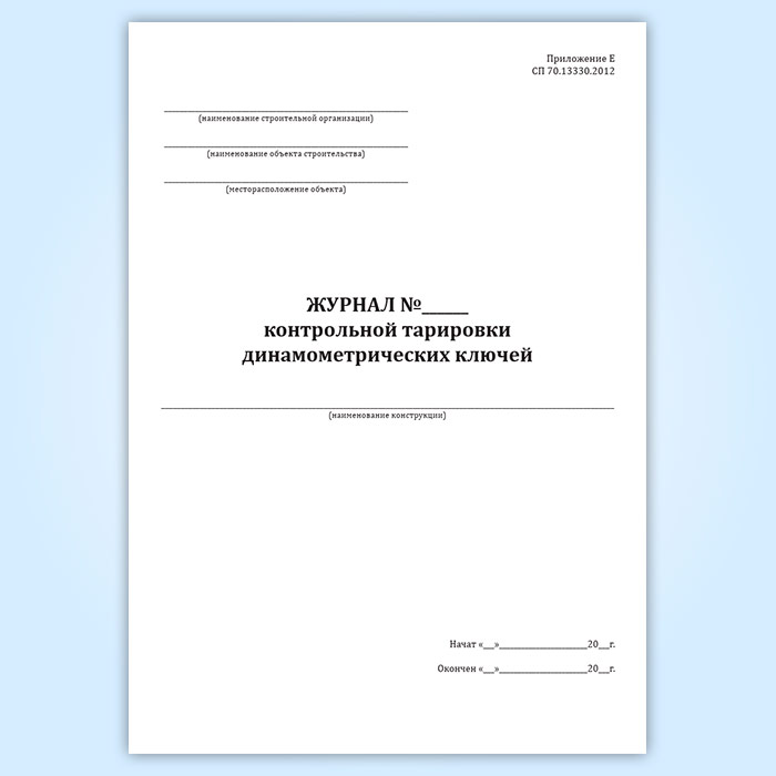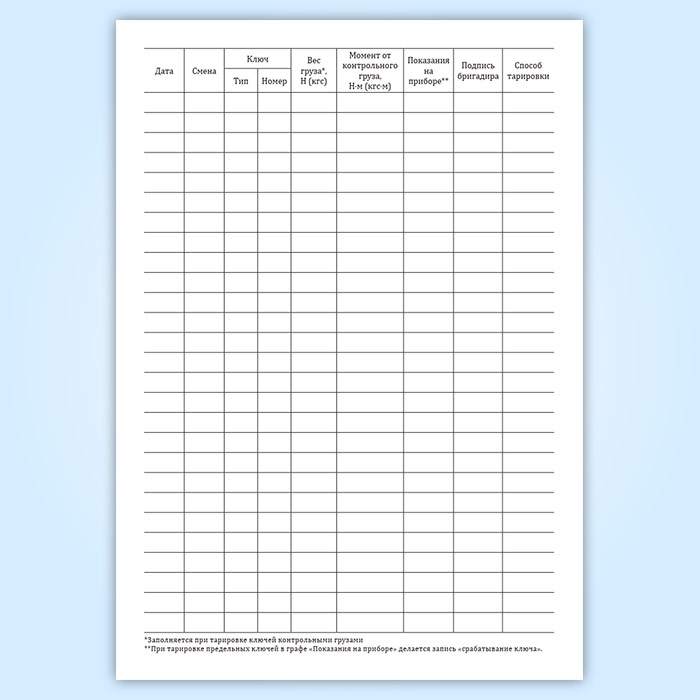 Журнал контрольной тарировки динамометрических ключей в Фрязино купить