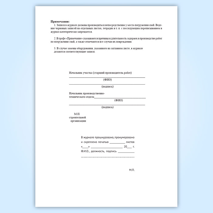 Журнал погружения свай в Фрязино купить