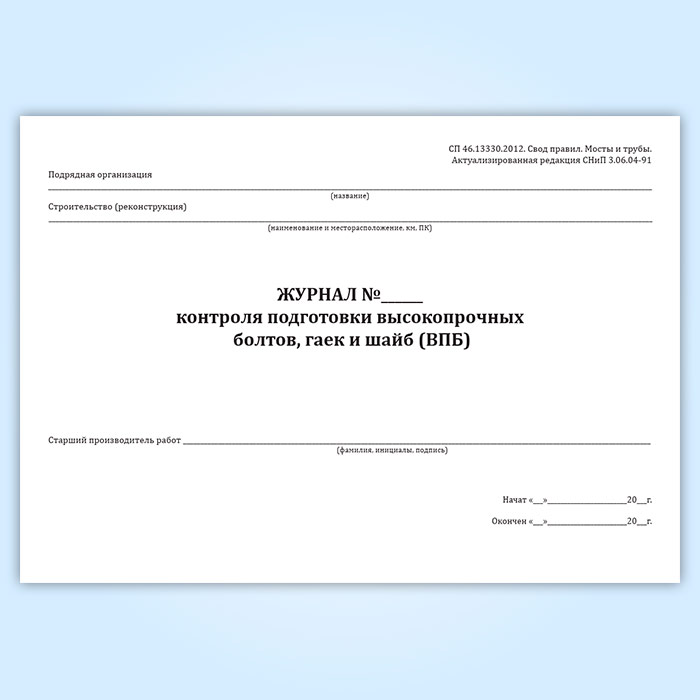 Журнал контроля подготовки высокопрочных болтов, гаек и шайб в Фрязино купить