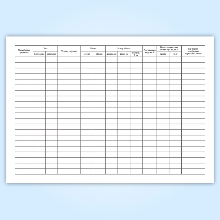 Журнал результатов по определению прочности бетона эталонным молотком Кашкарова в Фрязино купить