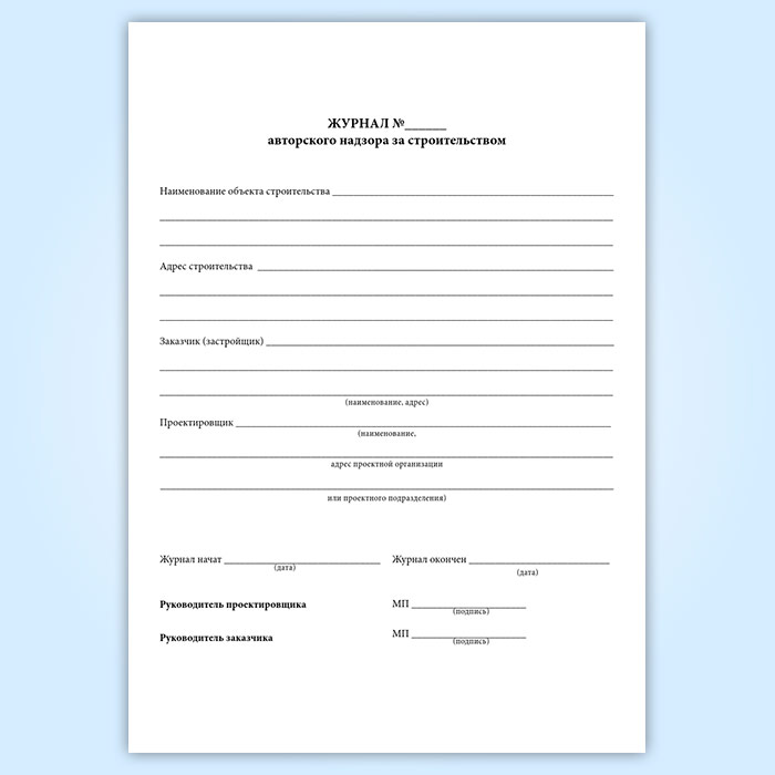 Журнал авторского надзора за строительством (СП 246.1325800.2016) в Фрязино купить