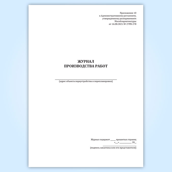 Журнал производства работ (Распоряжение Мособлархитектуры МО от 16.08.2021 N 27РВ-278) в Фрязино купить