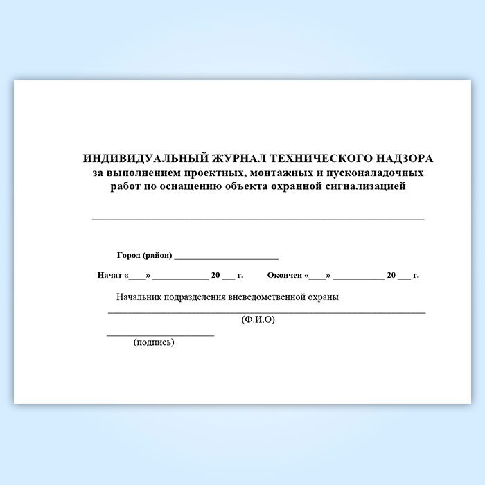 Индивидуальный журнал технического надзора за выполнением проектных, монтажных и пусконаладочных работ по оснащению объекта охранной сигнализацией в Фрязино купить