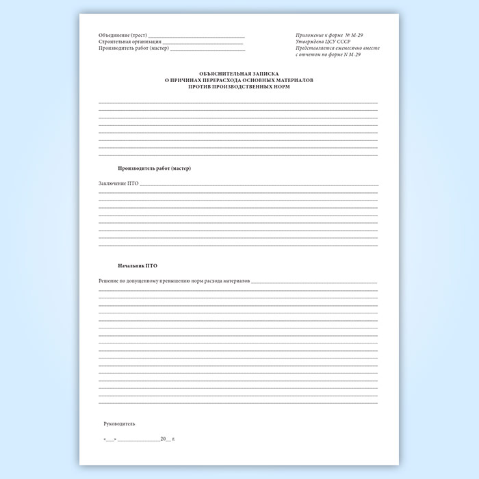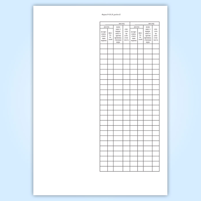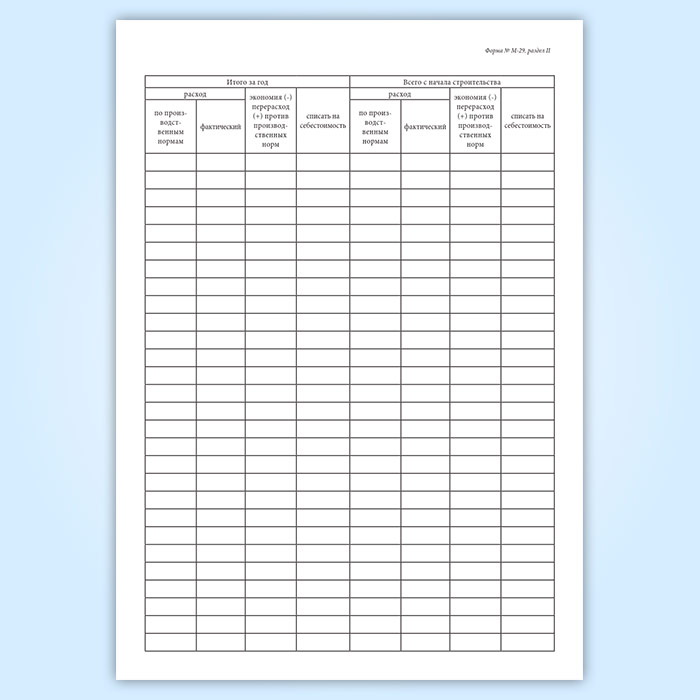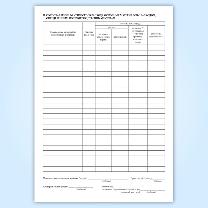 Отчет о расходе основных материалов в строительстве в сопоставлении с расходом, определенным по производственным нормам (форма М-29) в Фрязино купить