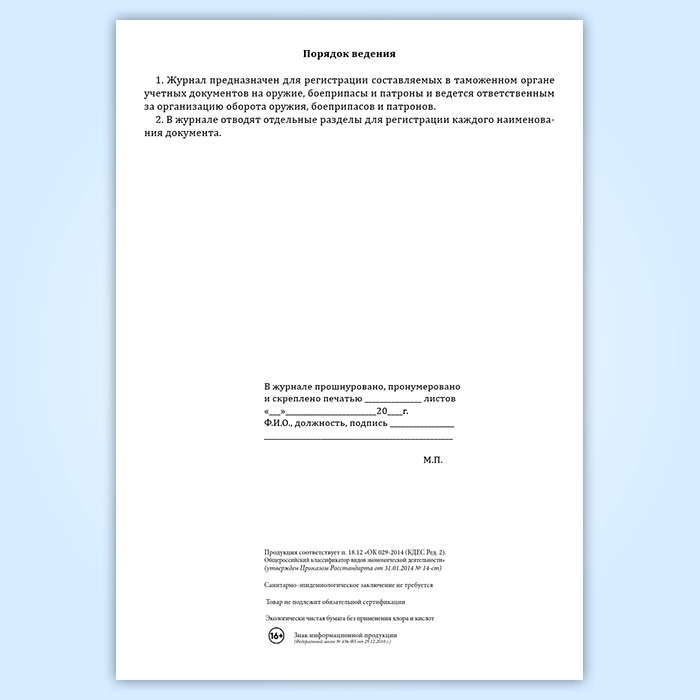 Вы получаете печатную продукцию прошнурованной и c местом для вашей печати в соответствии с действующими нормативными документами:
