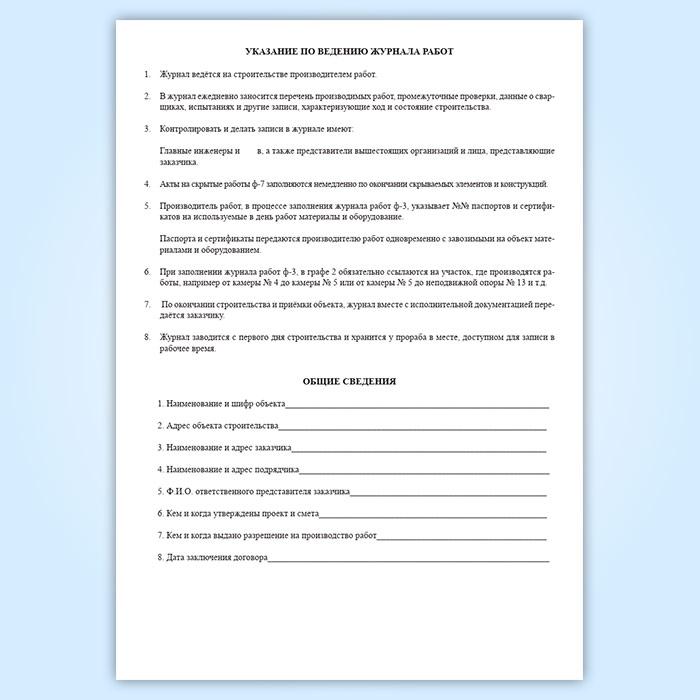 Журнал производства работ по строительству теплопровода в Фрязино купить