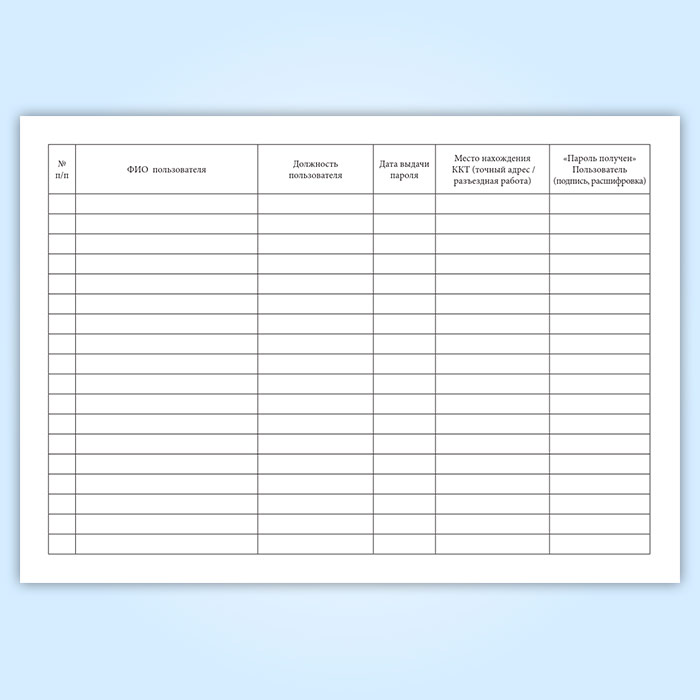 Журнал выдачи паролей для работы с контрольно-кассовой техникой (ККТ) в Фрязино купить