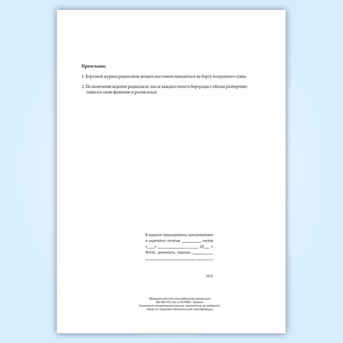 Бортовой журнал радиосвязи воздушного судна авиапредприятия в Фрязино купить