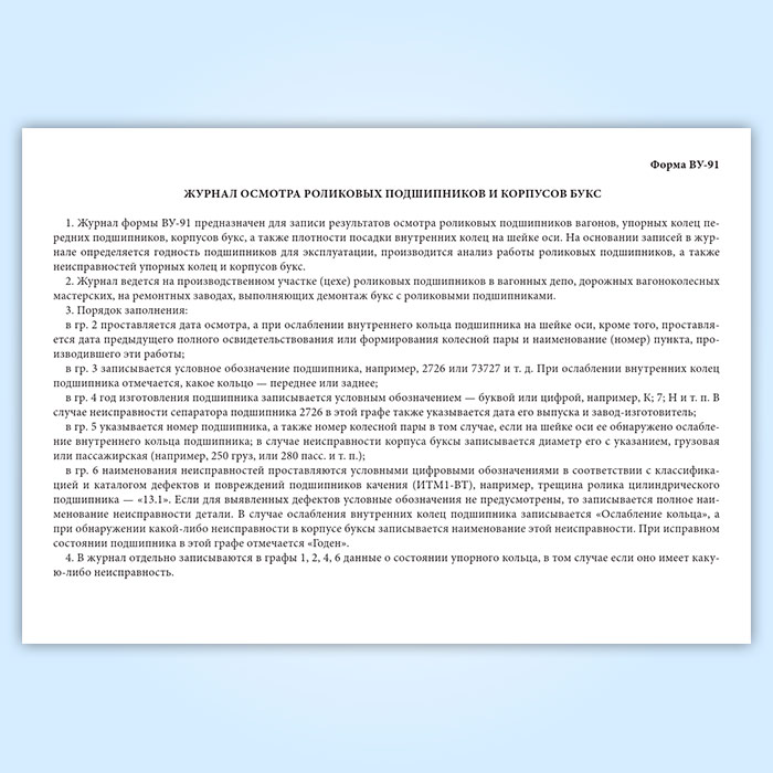 Журнал осмотра роликовых подшипников и корпусов букс (форма ВУ-91) в Фрязино купить