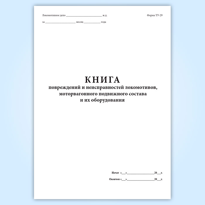 Книга повреждений и неисправностей локомотивов, моторвагонного подвижного состава и их оборудования (форма ТУ-29) в Фрязино купить