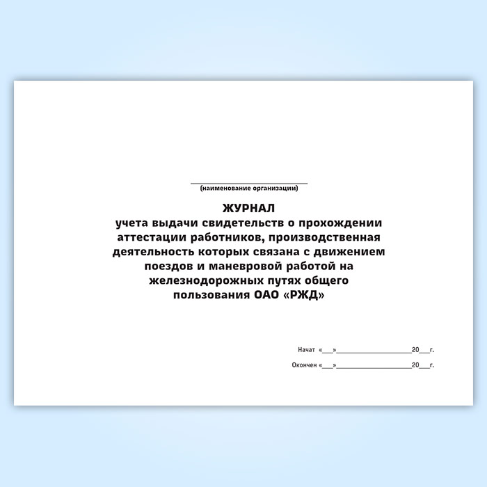 Журнал учета выдачи свидетельств о прохождении аттестации работников, производственная деятельность которых связана с движением поездов и маневровой работой на железнодорожных путях общего пользования ОАО «РЖД» в Фрязино купить