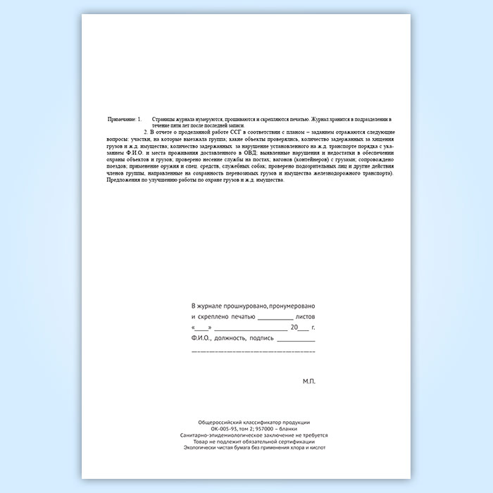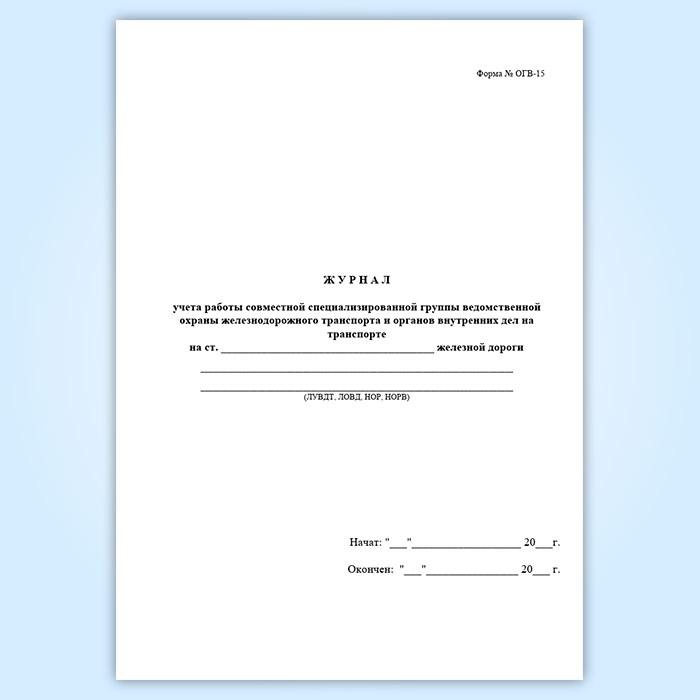 Журнал учета работы совместной специализированной группы ведомственной охраны железнодорожного транспорта и органов внутренних дел на транспорте (форма № ОГВ-15) в Фрязино купить