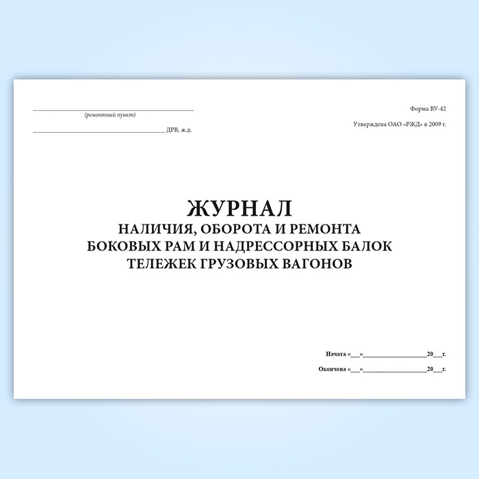 Журнал учета наличия, оборот и ремонт боковых рам и надрессорных балок тележек грузовых вагонов (форма ВУ-42) в Фрязино купить